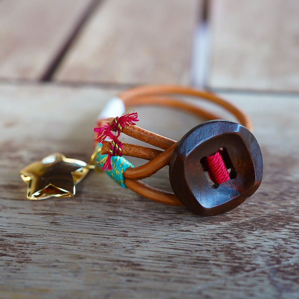18k gold plated star charm, large wooden button.